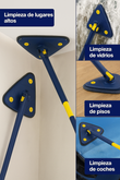 🧼✨ Mopa Triangular 360° – Mango Extensible con 3 Cabezales. Limpieza profunda y sin esfuerzo en techos, paredes y cualquier superficie.