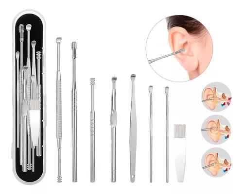 Audiclean🔥Kit de acero inoxidable para limpieza de oídos 9 en 1