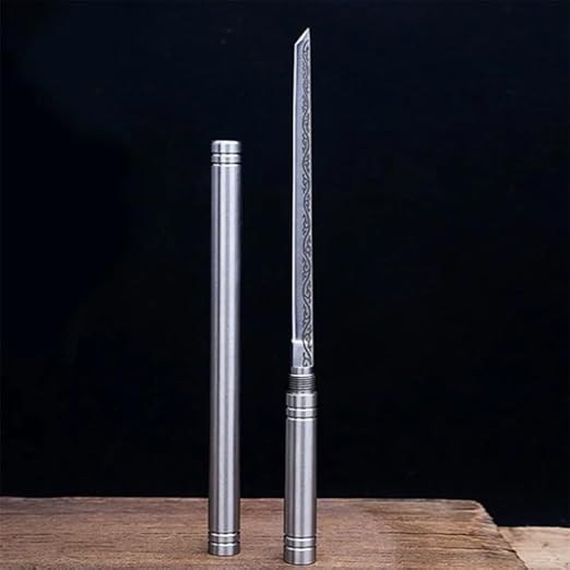 Su diseño exterior imita un simple bolígrafo o bastón metálico, lo que lo convierte en una herramienta completamente oculta. Nadie sospechará que llevas contigo un cuchillo, lo que lo hace perfecto para quienes buscan autodefensa.